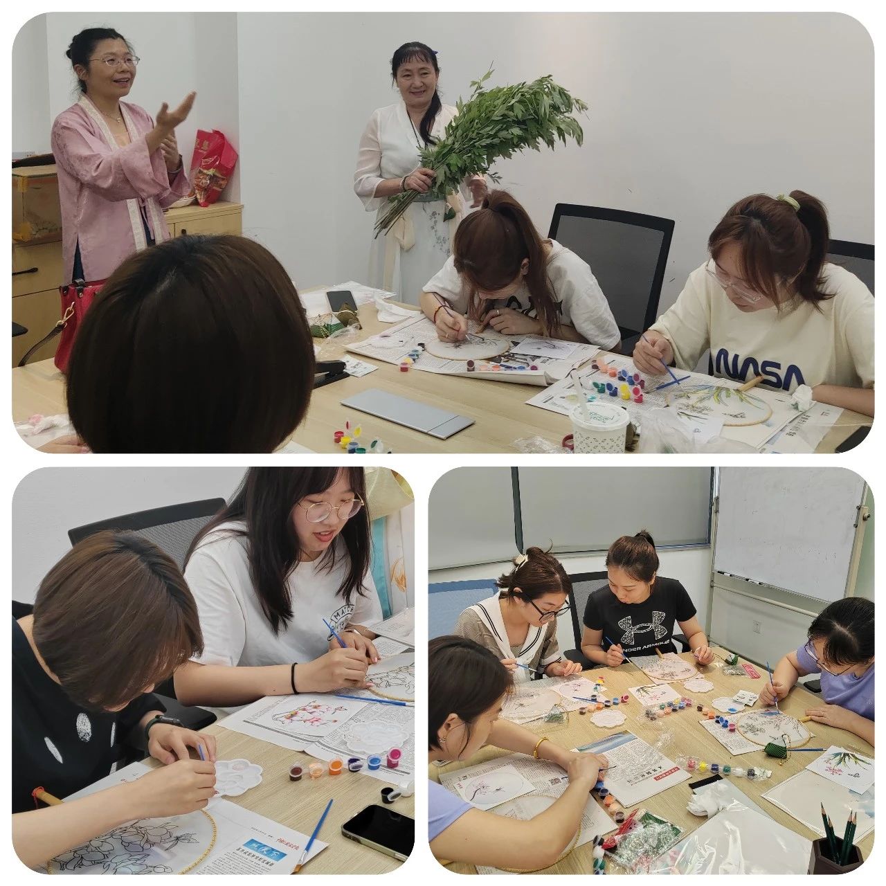 绘制团扇环节,大家精心设计挑选扇面花式,一笔一划细心描摹、精心勾勒。扇面各具风味,匠心独具,心随意转,饱含着对端午的安康与祝福。