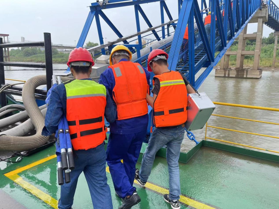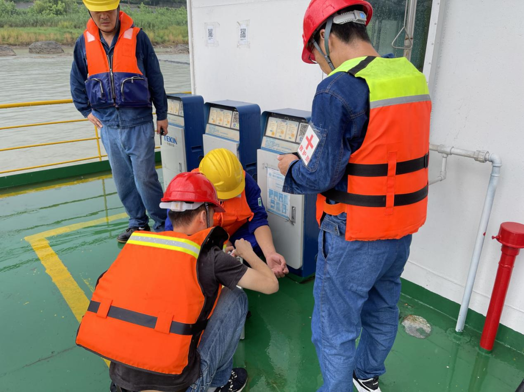本次应急演练模拟一艘卸货沥青船由于线路老化,生活舱起火,迅速点燃装饰材料,火势愈演愈烈,沥青船立即停止作业展开自救的同时向码头求援。过程中,有一名船员在救火战斗中手臂烫伤,公司按人身伤害现场处置预案进行救治。