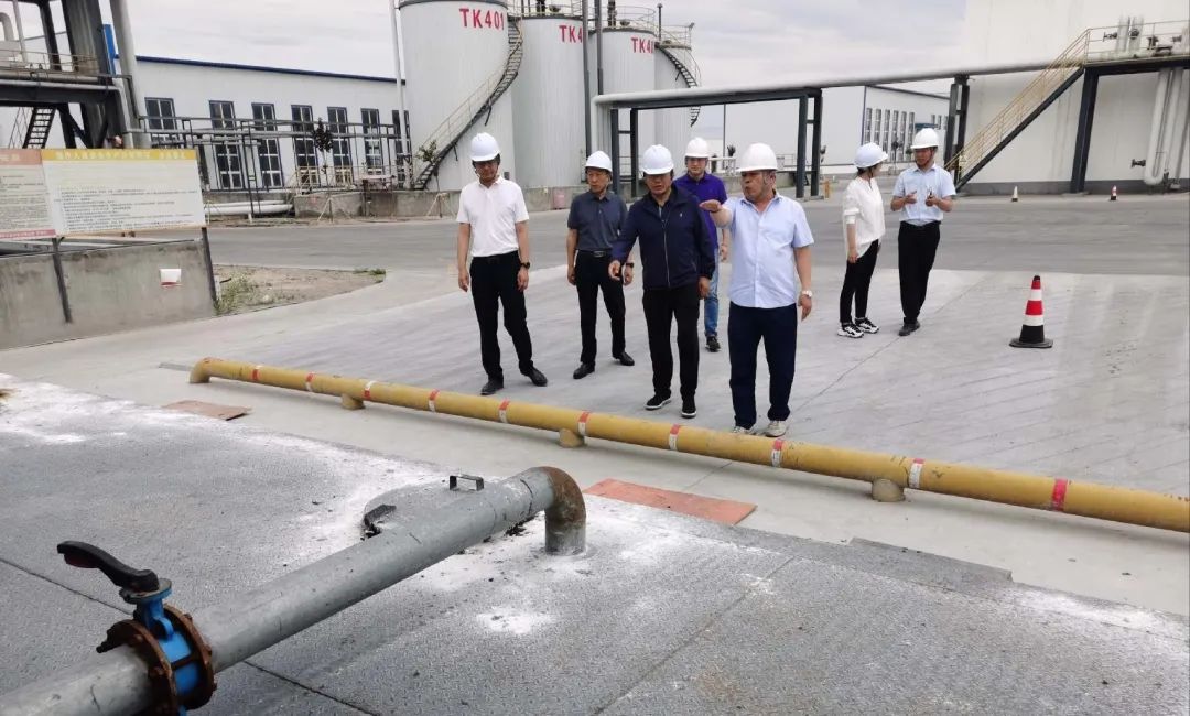 近日,新疆生产建设兵团第七师胡杨河市党委书记、第七师政委李华斌,第七师副师长、园区管委会主任王潇,副主任陈茂华一行分别到新疆新立基沥青加工基地调研指导,新疆新立基总经理余乐、副总经理方元武陪同调研。
