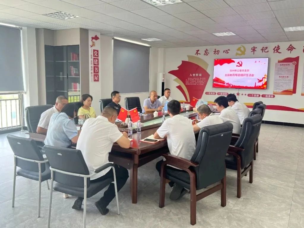江西新立基党支部组织召开学习贯彻习近平新时代中国特色社会主义思想主题教育专题组织生活会,yl7703永利集团党委书记、董事长郑良东到会指导,江西新立基党支部书记卢嘉文主持。