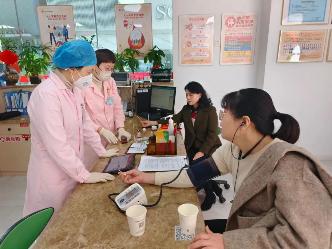 活动现场,在福新路献血屋志愿者的指导下,公司参与献血的党员、职工有序排队,有条不紊地进行着信息登记、血压测量、血液初检······等一系列流程,在献血的同时,医护人员耐心讲解献血常识及献血后的注意事项,并发放献血证,现场充满了爱的浓意。
