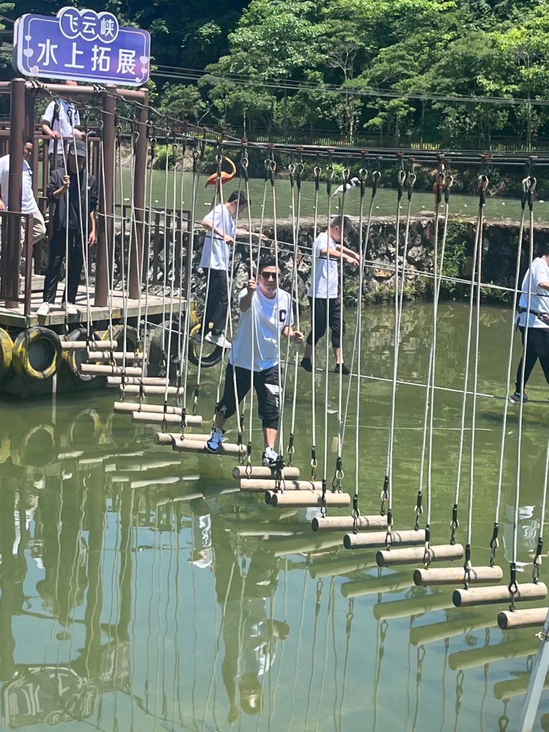 飞云峡景区山高林密,山泉清澈,职工们欣赏着山花美景,登上山顶观看群山连绵的壮丽景观,大家投身于大自然怀抱中享受徒步踏青的身心愉悦,在玻璃旱滑道丛林速滑、高空玻璃桥、绿色滑草等项目中积极体验、挑战自我。