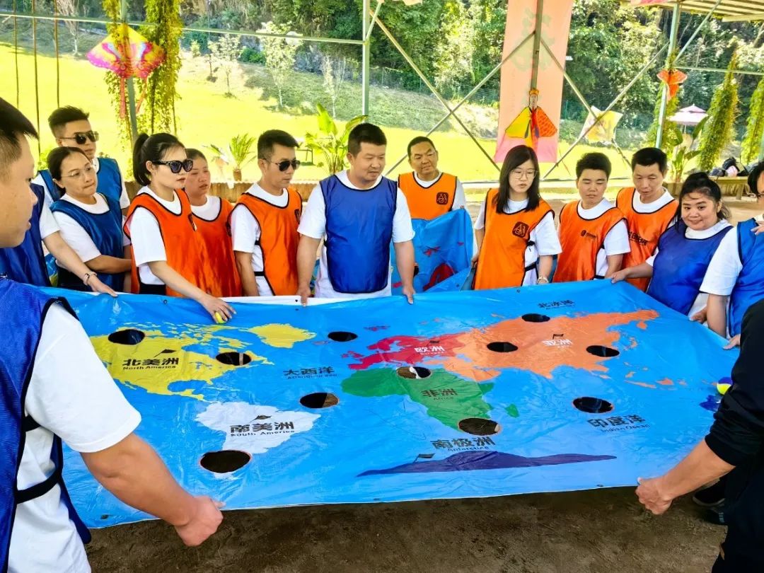 有趣的生活,一半是山川湖海,一半是开怀撒野。欢乐的游戏时间在破冰行动中拉开序幕,游戏设同心鼓、环游世界、连连看等团队协作项目,职工们通过分组合作一起取队名,想口号,迅速投入到有趣又刺激的团建游戏中,现场气氛热烈。参与活动的职工个个兴致高昂,欢笑声此起彼伏。在游戏“同心鼓”“环游世界”中,每组选手轮番上阵、默契十足,充分展现了员工们积极向上、团结奋进、阳光健康的精神风貌。