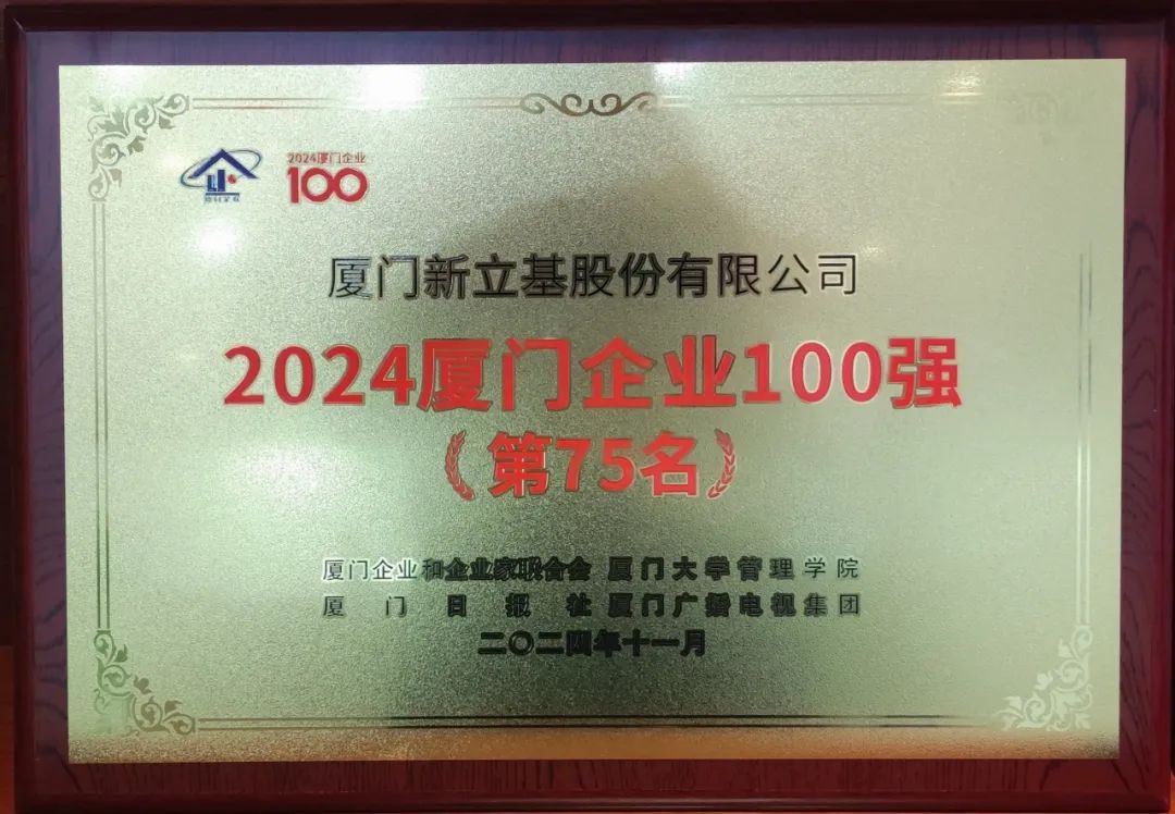 连续四年上榜“厦门企业100强”,位列厦门企业百强第75名,较上年度前进1位。