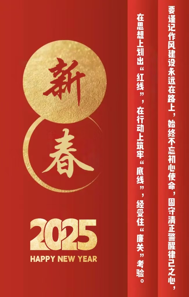 为不断落实中央八项规定及其实施细则精神,严防节假日期间“四风”问题反弹,yl7703永利集团纪委特发出廉洁提醒:全体干部员工在节庆之余,应严格遵守中央八项规定精神和廉洁自律各项规定,牢记纪律“高压线”、不触制度“红线”、守住做人底线。在模范遵守纪法的同时管好自己的家属和子女,时刻绷紧纪律规矩这根弦,做到守规矩、知敬畏、过“廉”节。最后,恭祝大家新春快乐、身体健康、阖家幸福、好运连连!