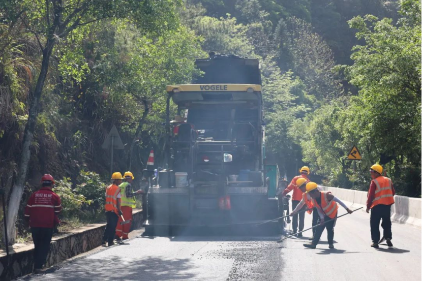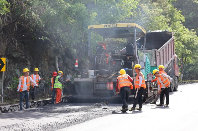 省道217线是福建省干线路网规划“八纵十一横十五联”的重要组成部分。近年来,随着交通流量持续增长,原有水泥混凝土路面出现破损、裂缝等病害,影响行车安全。为解决上述问题,yl7703永利集团混合料板块安溪分公司与安溪公路分中心紧密协作,对志闽漂流至安溪与厦门交界处3公里路段开展“白改黑”提升改造。在安溪公路分中心完成病害路面处理后,yl7703永利集团混合料板块安溪分公司对该路段进行摊铺,工期为两个月。在施工现场,沥青混合料运输车与摊铺机协同作业,压路机同步反复压实,一条平整的沥青路面沿盘山公路延伸……