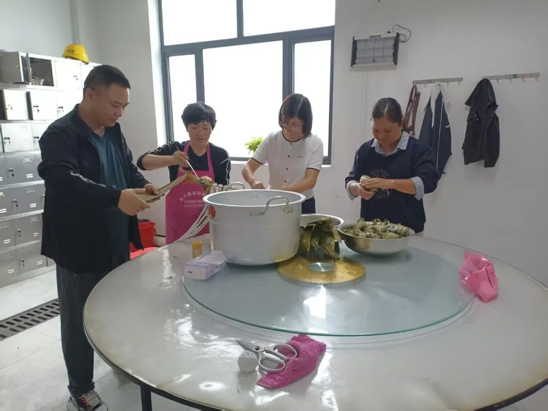 大家在食堂参与包粽子活动,食堂里艾草香气四溢,芬芳扑鼻,令人心旷神怡。大家围坐在一起,共同制作粽子。虽然技巧不够娴熟,但是参与活动的热情却让大家迫不及待一展身手,大家互相学习互相教学,欢声笑语不断,在感受浓浓节日气氛的同时,也展现出同事间和谐融洽、互助向上的风采。