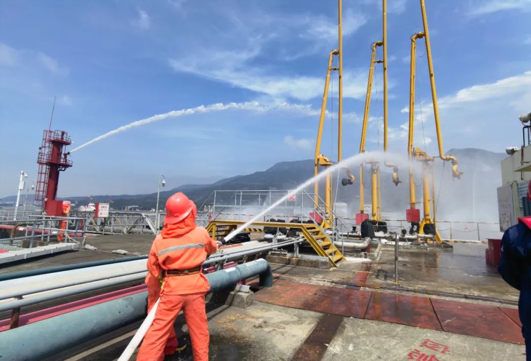 演练前期通过“桌面推演+实地预演”精心筹备,主要内容包括模拟巡检员在码头前沿发现阀门泄漏,立即上报并抢修;抢修中因不规范器具导致静电起火,初期扑救无效后启动消防应急预案;火情扑灭后,针对江面和平台污染物启动防泄漏预案处置。