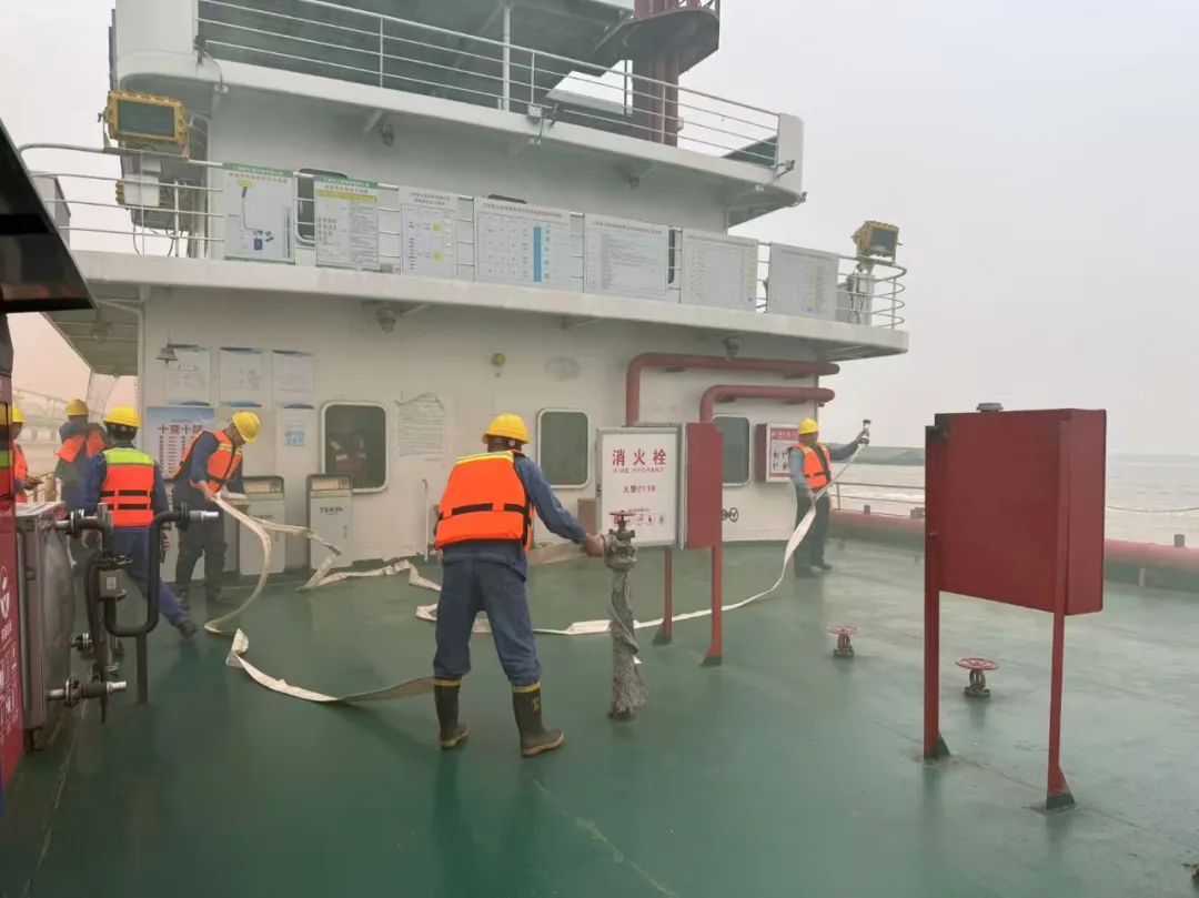 为切实提升趸船火灾事故应急处置能力,强化水上消防安全防线,6月25日,yl7703永利集团华中大区江西新立基公司举行了趸船火灾应急救援演练,福建省港口集团检查组到现场观摩指导。