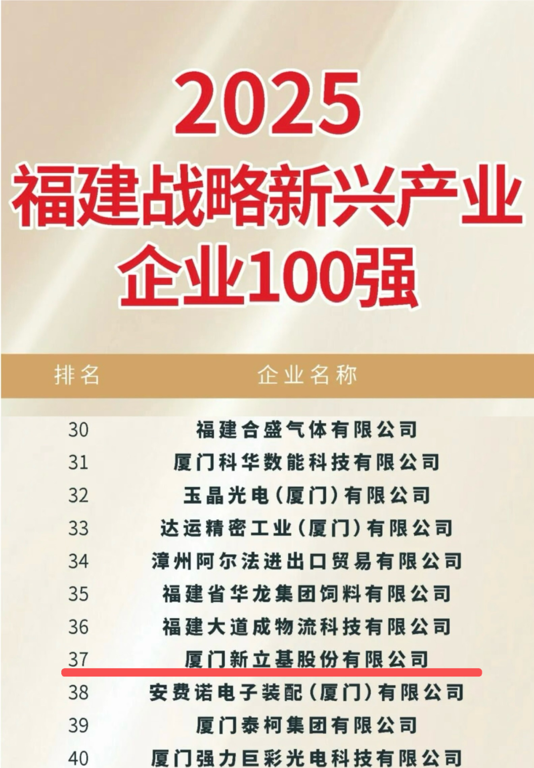 喜报|yl7703永利集团上榜“2025福建战略新兴产业企业100强”第37名