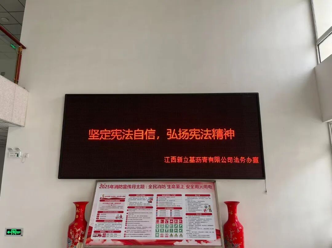 江西新立基通过宣传栏展示宪法主题海报、电子屏滚动播放宣传标语等可视化形式,开展系列普法活动,有效强化全员宪法意识与法治观念,营造企业依法经营、合规管理的良好氛围。