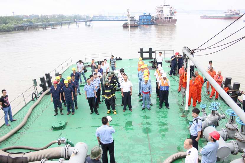 2013年6月7日上午9时,为了迎接“安全生产安全月”的到来,由九江长江消防支队组织,联合九江海事局、长江九江航道处、九江新港海事处、中石化九江分公司、江西新立基沥青有限公司等单位举行了“2013年度长江九江水上灭火救援联合演习”。