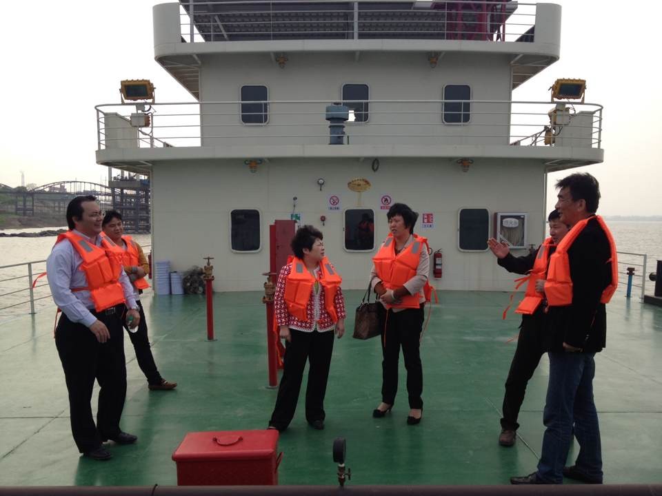 2014年4月3日下午15时,九江市浔阳区区委常委、副区长刘吾爱在公司在区政协副主席秦永红、园区办主任龚雪华、公司董事长王绪泉、法人代表朱勇进等的陪同下视察公司石化物流码头货物接卸准备工作及作业情况。