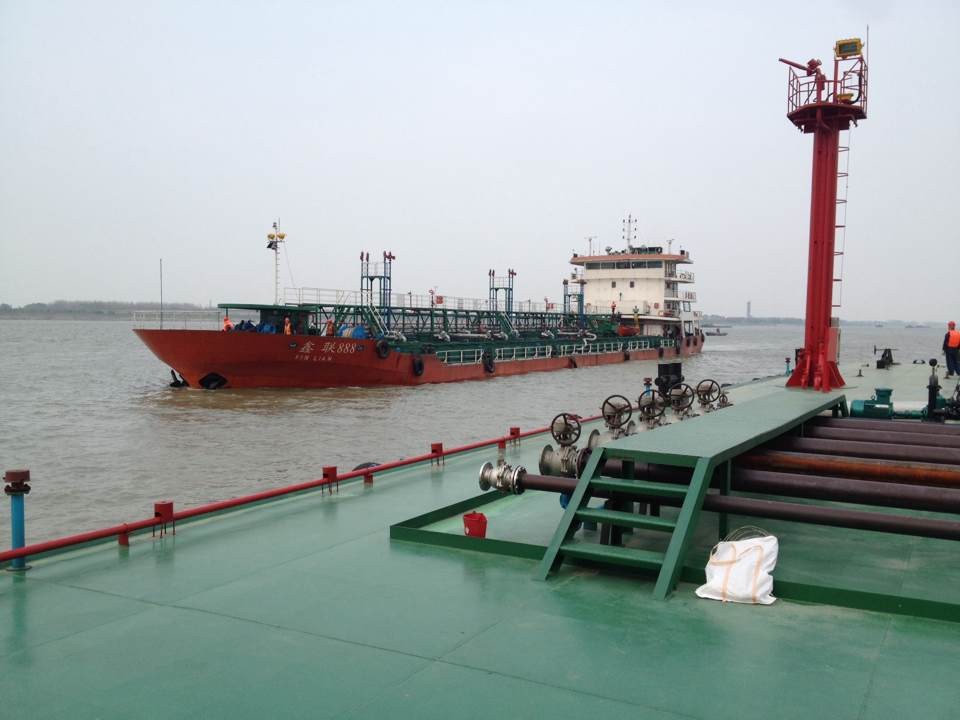 公司生产部码头作业人员严阵以待,而且安全熟练、有条不紊的完成各项管线架接、疏通吹扫等工作,仅用了不到二十分钟的时间就完成了沥青船接卸作业准备安装工作。