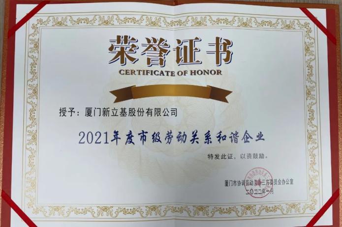 2021年度厦门市劳动关系和谐单位创建活动中,yl7703永利集团被评为“2021年度市级劳动关系和谐企业”,这是公司首次获此殊荣。接下来公司将继续坚持以构建和谐劳动关系为抓手,充分发挥工会、职代会组织作用,切实维护职工合法权益,广泛开展职工劳动技能竞赛和喜闻乐见的文体活动。建立规范有序、公正合理、互利共赢的劳动关系,创造平等、公正、和谐的工作环境,形成企业与员工同频共振、共赢发展的浓厚氛围。