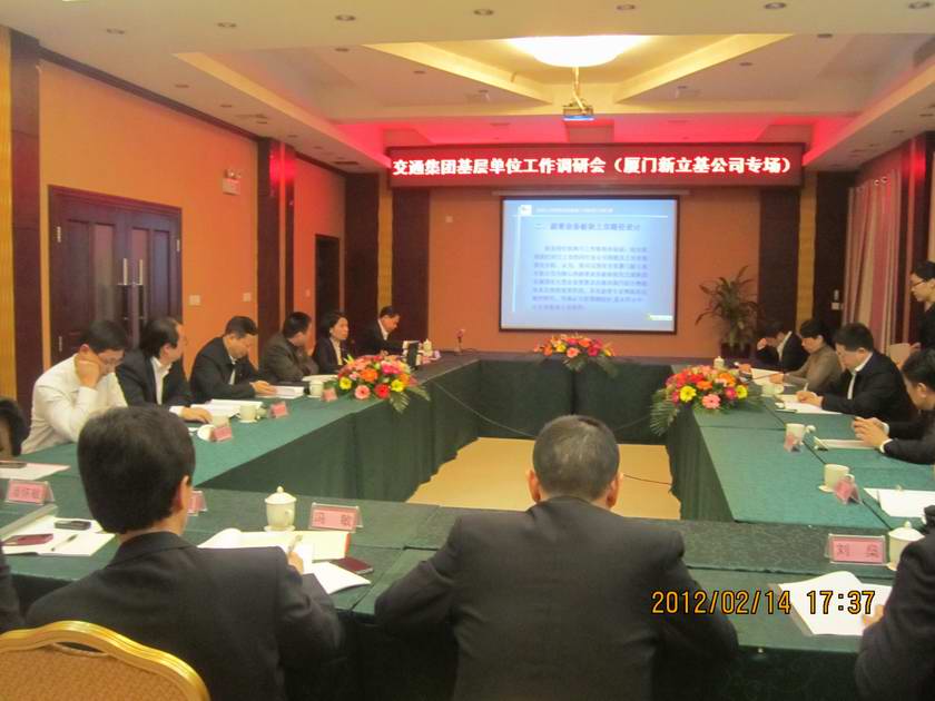 随后,李总在角美主持召开了交通集团基层单位工作调研会(yl7703永利集团公司专场)。福建省交通建设投资有限公司郭辉总经理首先在会上热烈欢迎集团领导们前来新立基公司检查指导,并简要汇报了投资公司沥青、化工两大板块的发展思路。接着,投资公司副总经理、yl7703永利集团公司总经理朱勇进汇报了新立基公司的基本情况、沥青仓储网络的分布情况、沥青市场分布和经营情况、公司2012年工作思路及需要集团帮助解决的问题等。投资公司副总经理林影汇报了沥青业务板块上市近期开展的主要工作、上市路径设计及存在的问题需集团支持的工作等。