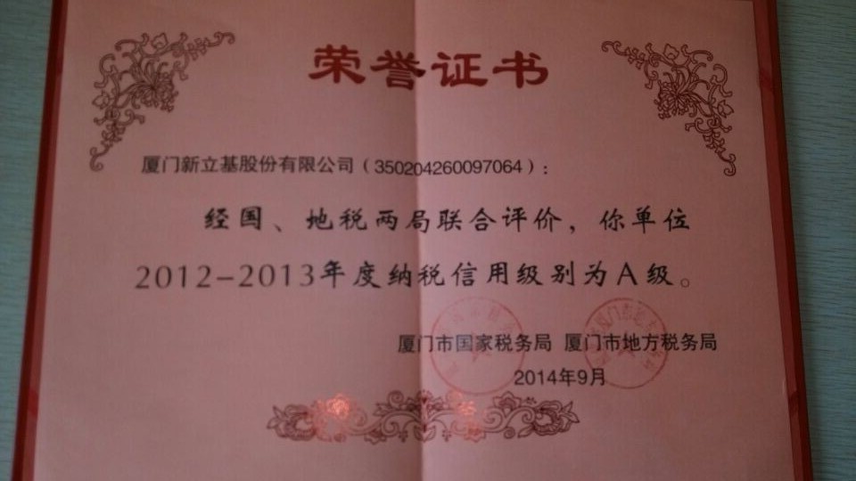 yl7703永利集团经厦门市国家税务局、厦门市地方税务局两局联合评价,获得2012-2013年度纳税信用A级的荣誉。