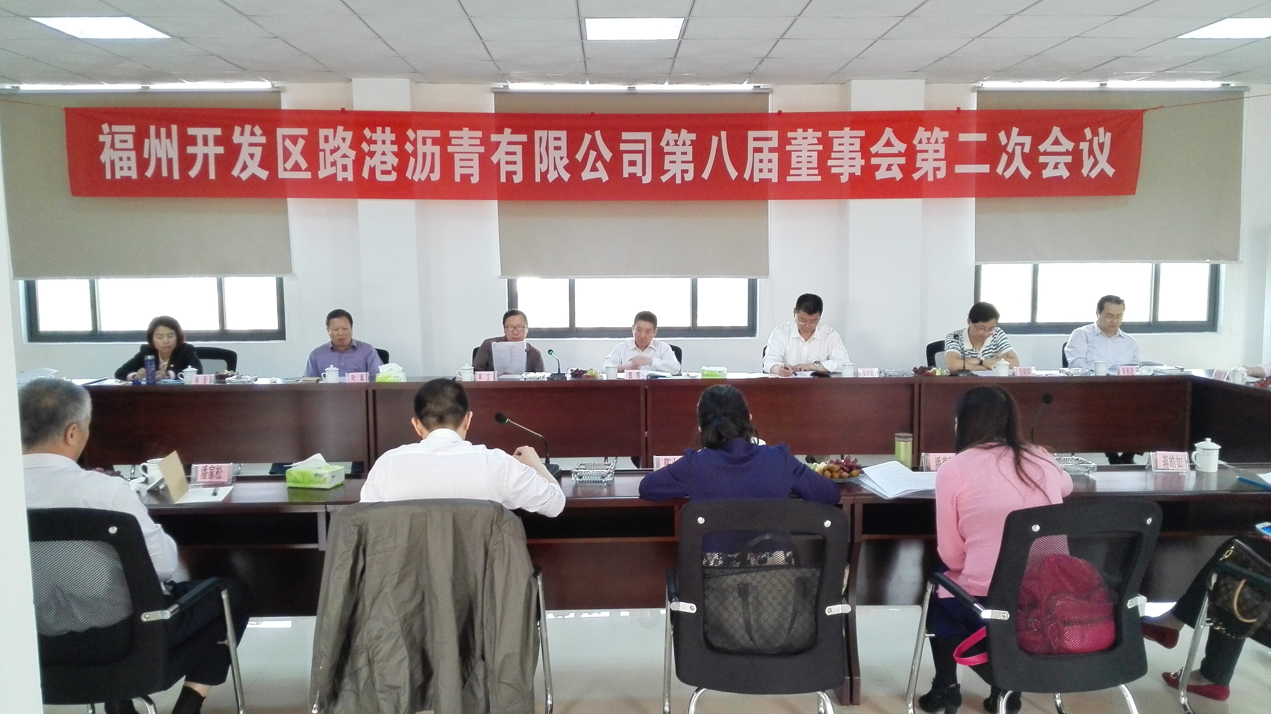 4月17日上午,福州开发区路港沥青有限公司第八届二次董事会在漳州角美沥青库会议室召开。会议由董事长连晓琪先生主持,参加此次会议的有福建省交通建设投资有限公司领导、公路物资公司股东代表。会议听取了《公司2014年度总经理工作报告及2015年工作计划报告》、《公司2014年财务执行情况和2015年财务预算报告》及《公司2014年度利润分配预案》。