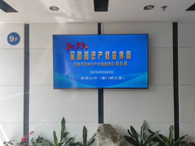 公司本部、各权属企业通过Led电子展示屏、悬挂知识产权横幅、观看知识产权公益微课堂《专利法》微视频宣传片等方式开展以“全面开启知识产权强国建设新征程”为主题的知识产权周活动。