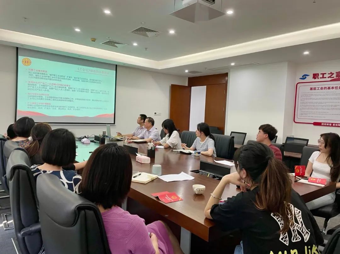 为深入学习宣传贯彻新修订的《中华人民共和国工会法》(以下简称《工会法》),进一步推动工会工作,提升职工依法维护合法权益的意识。4月27日上午,公司党委副书记、工会主席吴悦荣为现场员工发放《中华人民共和国工会法中国工会章程》最新版,并从《工会法》修改的目的意义、修改的主要亮点等方面进行了解读,对《工会法》修改关注度比较高的问题进行了详细讲解。其他权属企业员工以直播课堂形式进行学习观看。通过线上+线下的方式,学习宣传贯彻工会法最新内容。