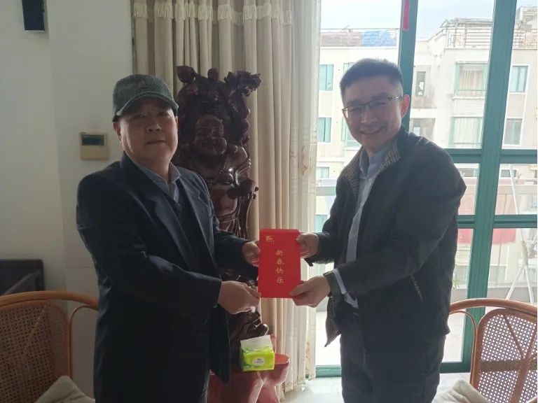 慰问中,郑良东向退休职工送上慰问金与慰问品,与他们亲切交谈,了解他们的身体健康状况与生活需求,叮嘱他们一定要保重身体注意防护疫情与防寒保暖。