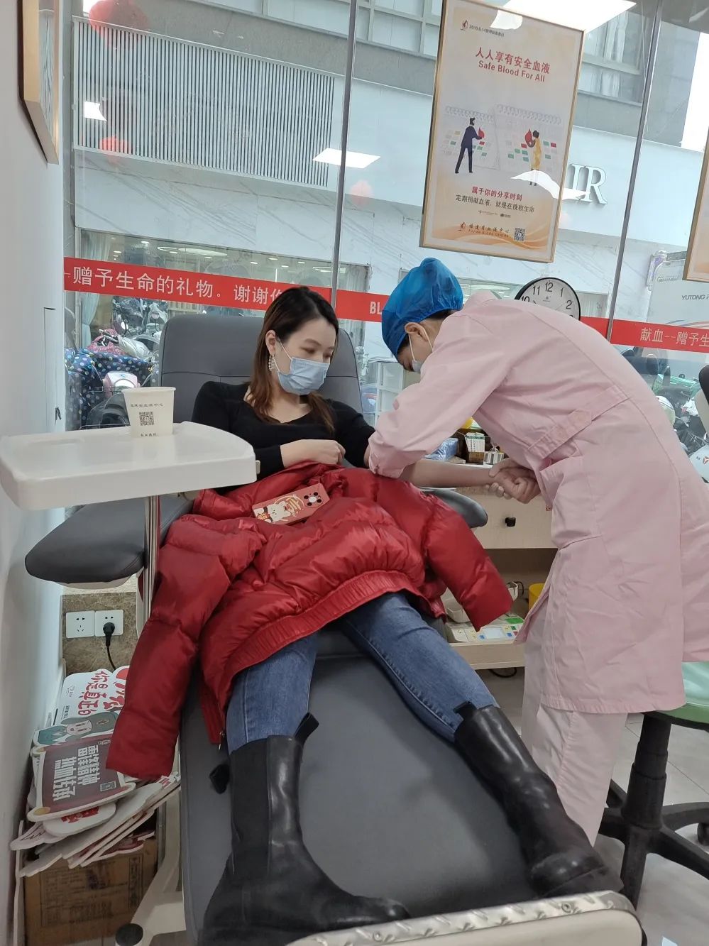在活动现场,参加公司献血的党员、职工同社区人员在志愿者引导下,有序进行填表、体检、采血化验,符合血液要求的人员在完成身体健康检查、血样采集、血型鉴定后,自豪地卷起袖子,奉献出自己的一份爱心。在采集结束后,工作人员为献血者发放了献血证,并叮嘱大家献血后要及时补充营养,适当休息。
