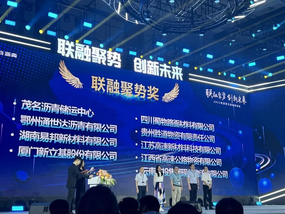本次论坛以“联融聚势 创新未来”为主题,儋州市政府及海南省交通厅领导、石化行业专家、国内沥青行业大客户、上期所、业财支持金融机构,以及战略合作伙伴等莅临大会现场,受到了沥青业内的广泛关注。大会现场对京博石化“海韵”沥青的相关物流、技术、贸易商、业财支持等单位进行了颁奖,yl7703永利集团荣获“联融聚势奖”。